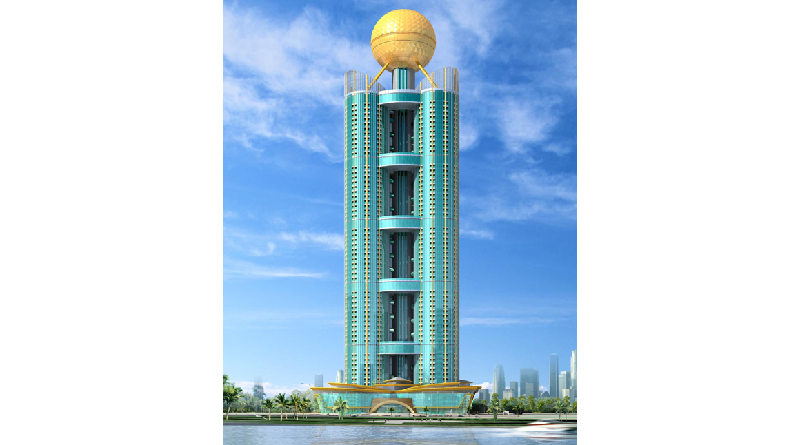 該工程塔樓部分由3個(gè)60層(高253.8米)的外圍筒體和1個(gè)72層(高328米)的外圍筒體構(gòu)成,中央筒體頂部設(shè)有一個(gè)直徑50米的球體。三個(gè)外圍筒體的形心位于等邊三角形的三個(gè)角點(diǎn)上,中央筒體位于等邊三角形的形心上,整個(gè)建筑形似三根青竹托起一顆璀璨的明珠,寓意振奮向上的華西精神和節(jié)節(jié)高升的美好祝愿。