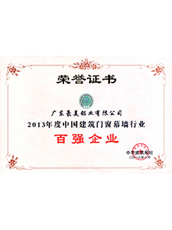 2013年度中國建筑門窗幕墻行業(yè)百強企業(yè)