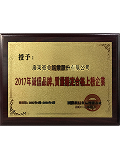 2017年誠信品牌質(zhì)量穩(wěn)定合格上榜企業(yè)