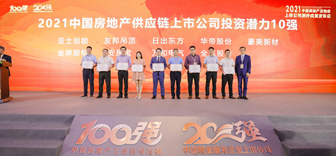 正值上市一周年,豪美新材憑借專業(yè)的技術(shù)服務(wù)、優(yōu)質(zhì)的產(chǎn)品及強(qiáng)大的品牌影響力,在基于對房地產(chǎn)供應(yīng)鏈上市公司投資潛力維度的研判中脫穎而出,被評選為“2021中國房地產(chǎn)供應(yīng)鏈上市公司投資潛力10強(qiáng)”企業(yè),也是鋁型材行業(yè)中唯一一家獲此殊榮的企業(yè)。